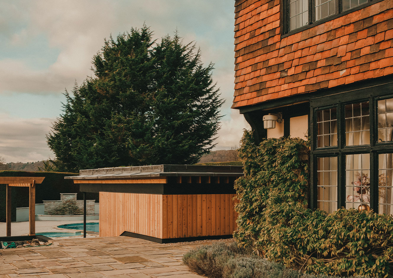 Set within the Surrey Hills Area of Outstanding Natural Beauty and the Green Belt, this project was designed to be subtle on the land while delivering a versatile, contemporary space for wellness, fitness, and entertaining.