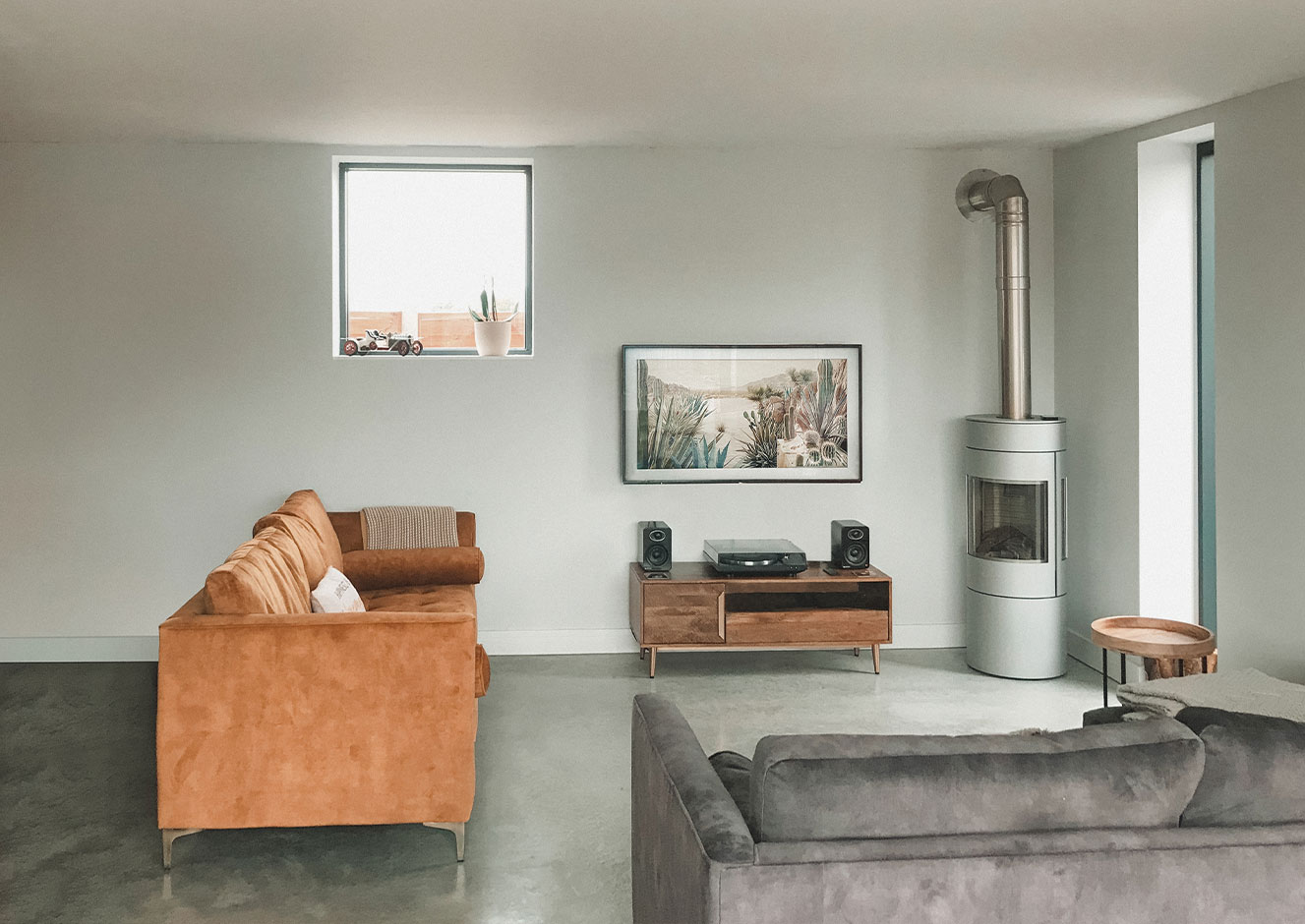 Our clients sought a local architect familiar with rural character and planning constraints. Together, we turned the barn’s raw concrete structure into a warm, welcoming home while retaining its agricultural spirit. Timber cladding now wraps the exterior, adding natural warmth, while a sleek zinc roof nods to the building’s working past. Large windows bring light into every room and frame sweeping views across the fields, blurring the line between indoors and landscape.